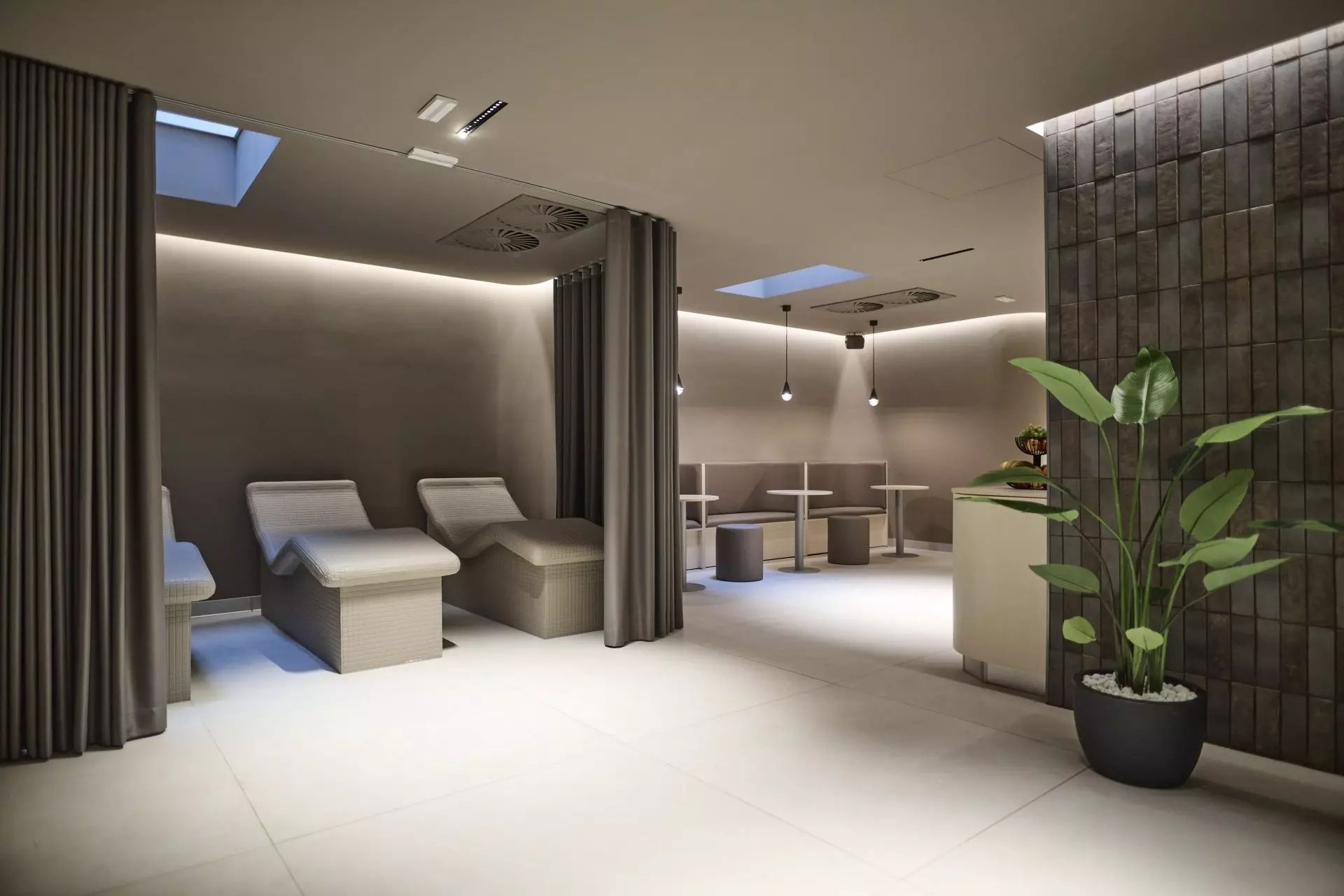 🛋️ Mirni lounge kotički in vodne postelje vabijo k popolnemu počitku.